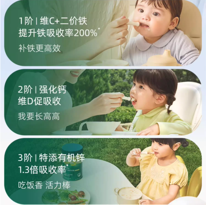 “分阶好营养,细腻好吸收”是英氏米粉的产品理念。不同月龄段宝宝对米粉配方、营养素和口味的需求各不相同,英氏米粉由博士后团队亲研,依据宝宝不同成长阶段需求分为1~3阶,基于生理、营养、感知力的精准需求,为不同阶段的宝宝量身定制适合的米粉,科学配方不仅要高营养更要阶阶营养好吸收。